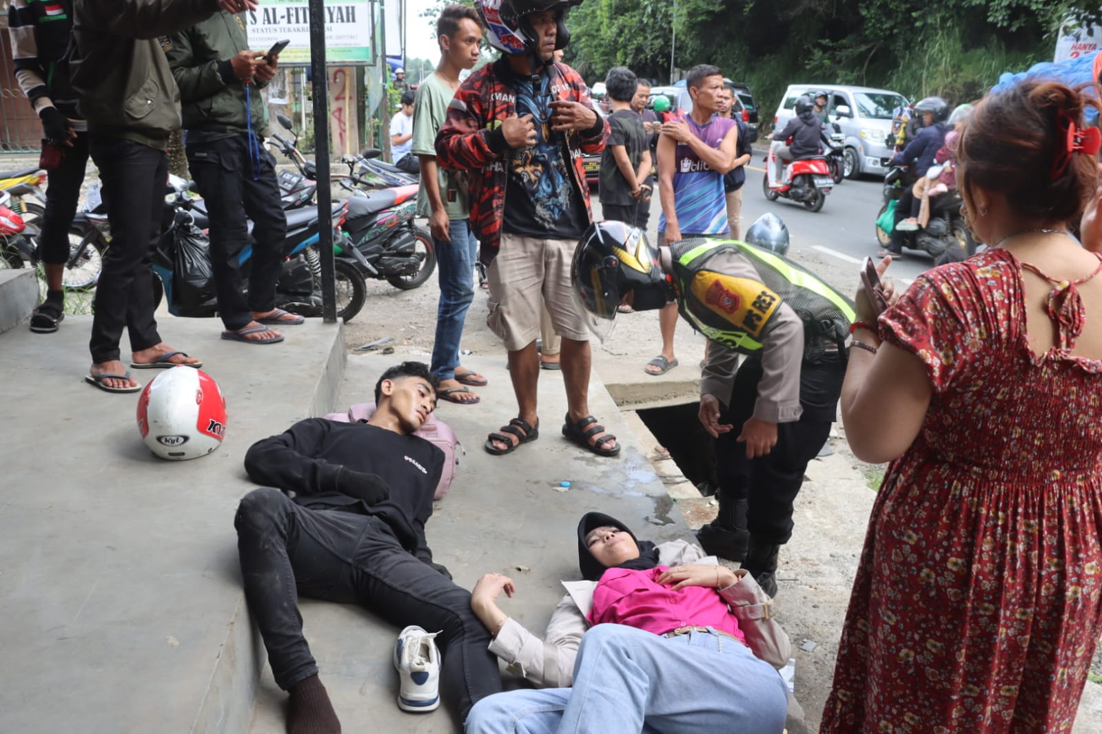 Sukabumi-Kapolres Sukabumi AKBP Tony Prasetyo turun langsung membantu evakuasi korban kecelakaan lalulintas yang terjadi di Depan Mako Damkar Parungkuda Kecamatan Parungkuda Kabupaten Sukabumi pada Senin (8/4/2024) sekira pukul 16.30 WIB.