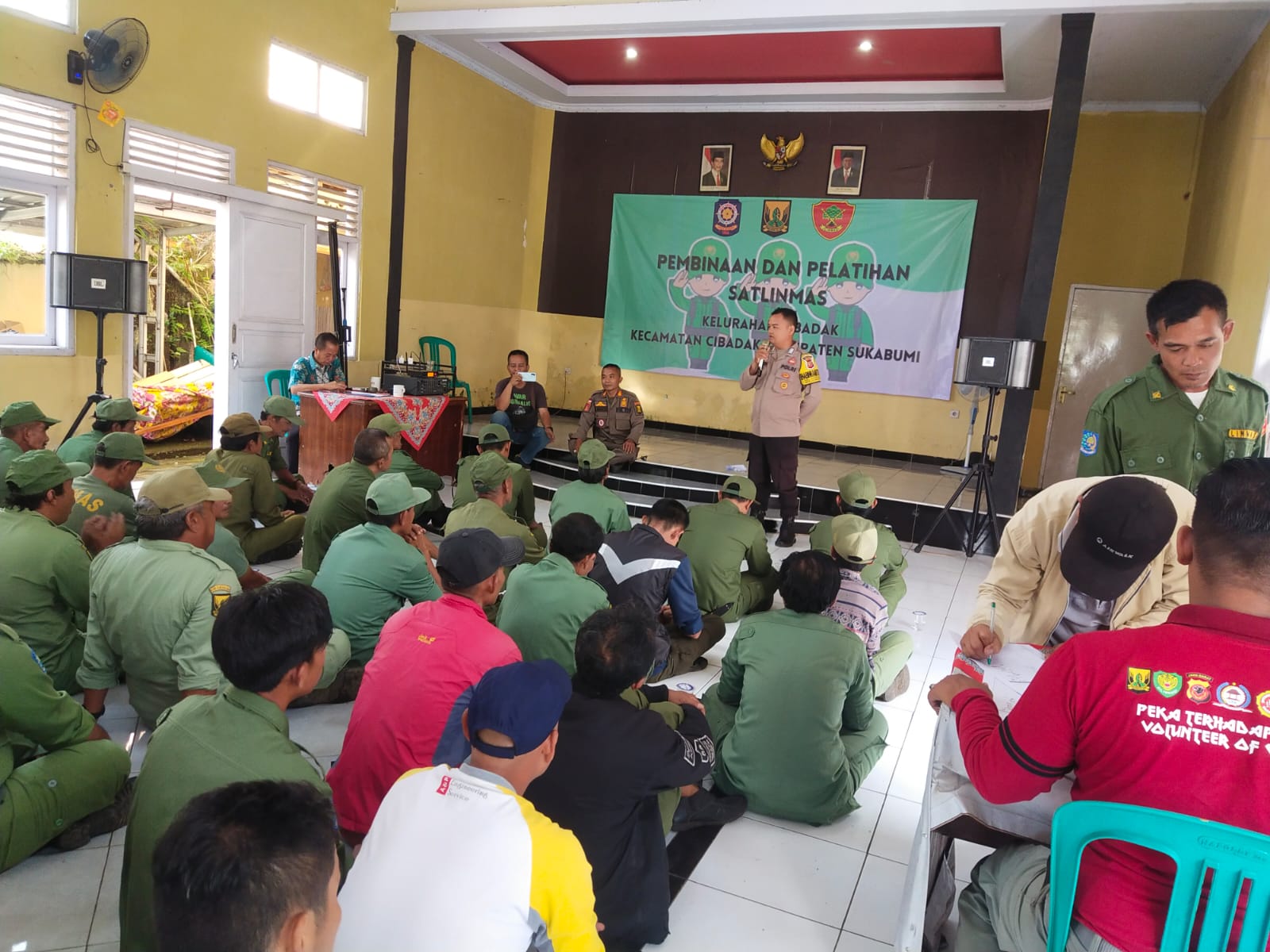Polsek Cibadak – Menindaklanjuti Surat Keputusan Kapolri No.Pol: Skep/765/X/2005 tanggal 25 Oktober 2005 tentang “Pola Pembinaan Sistem Keamanan dan Ketertiban Masyarakat” Bripka Sandi Praja Bhabinkmtibmas Kelurahan Cibadak Polsek Cibadak bersama Babinsa Koramil 0711 Cibadak Serka Herman memberikan pembekalan dan pembinaan terhadap Anggota Linmas Kelurahan Cibadak, bertempat di Aula Kelurahan Cibadak.