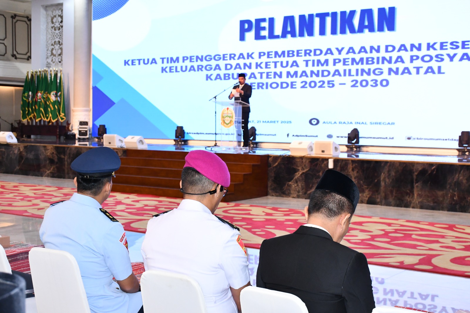 TNI AL, Belawan,- Komandan Lantamal I Brigjen TNI (Mar) Jasiman Purba, SE, CHRMP., diwakili Asisten Potensi Maritim (Aspotmar) Danlantamal I Kolonel Mar Hendra Zarnadi, S.Sos., M.Si., M.Tr. Opsla., menghadiri Pengambilan Sumpah Jabatan dan Pelantikan Bupati dan Wakil Bupati Mandailing Natal, bertempat di Aula Raja Inal Siregar, Lantai 2 Kantor Gubernur Sumut, Jalan Diponegoro No. 30, Sumatera Utara, Jumat (21/3/2025).