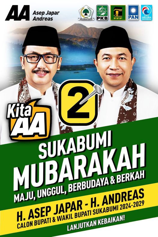 Kami mengajak seluruh masyarakat Kabupaten Sukabumi untuk bersama-sama meraih kesempatan ini. Dukung pasangan calon Nomor Urut 2, DRS. H. Asep Japar, MM dan H. Andreas, SE, pada pilkada 2024. Dengan memilih mereka, kita turut serta dalam mewujudkan Sukabumi yang MUBAROKAH.