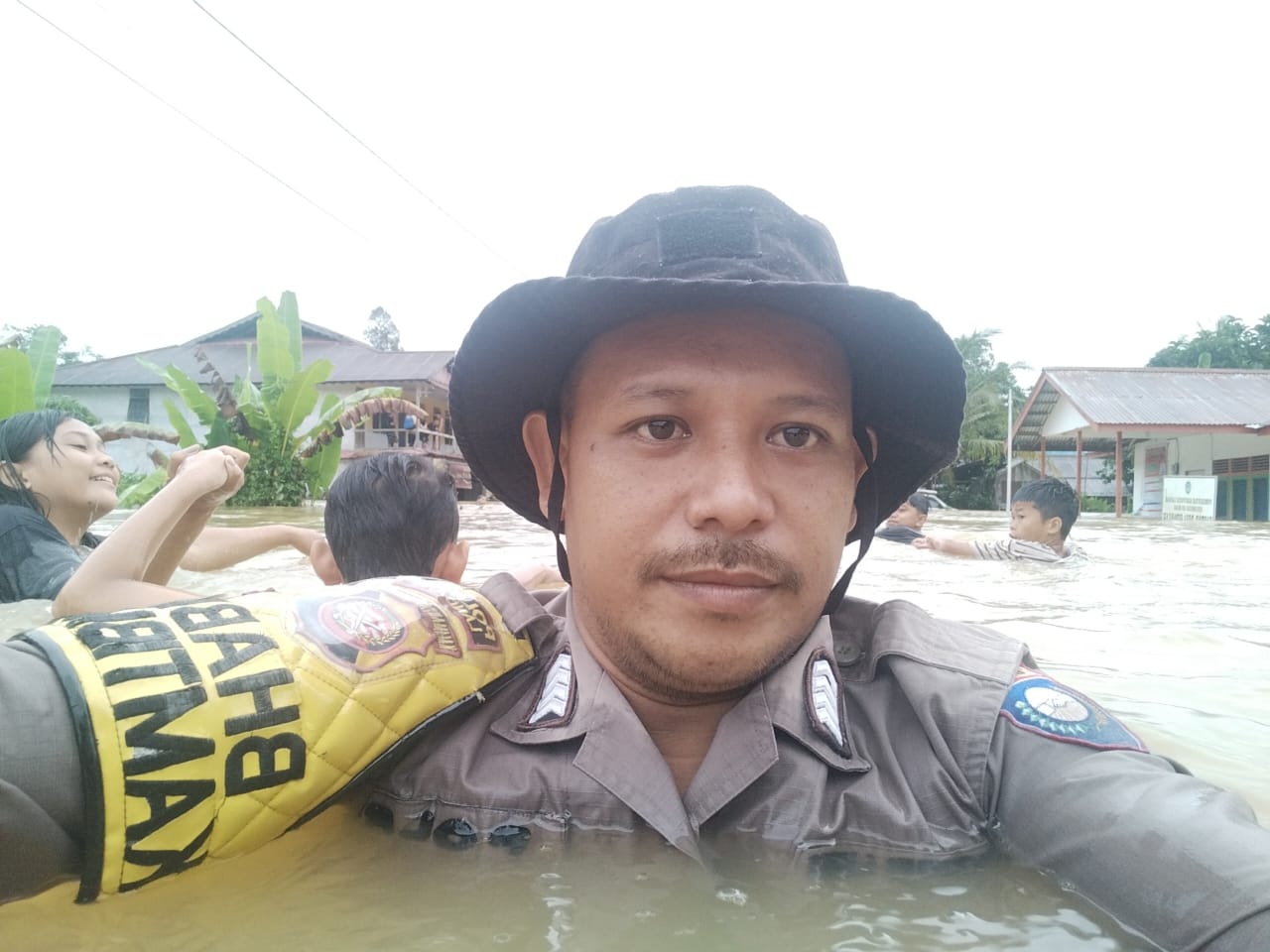 Saat banjir melanda, semua pihak tampak berjibaku saling bergotong royong untuk mengevakuasi sejumlah warga masyarakat yang terdampak banjir tidak ketinggalan Bhabinkamtibmas Polsek Air Besar Polres Landak BRIPKA Wahyudin Lubis langsung menuju lokasi bencana untuk melakukan evakuasi dan membantu sejumlah warga masyarakat yang terdampak banjir bandang akibat luapan air sungai.