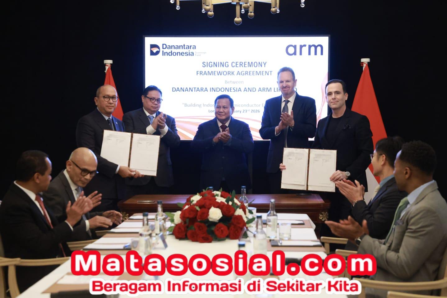 Matasosial.com, London — Presiden Republik Indonesia Prabowo Subianto menyaksikan penandatanganan kerangka kerja antara Danantara dan Arm Limited di London, Inggris. Kerangka kerja ini di antaranya memperkuat visi Indonesia dalam penguasaan teknologi semikonduktor atau chip.