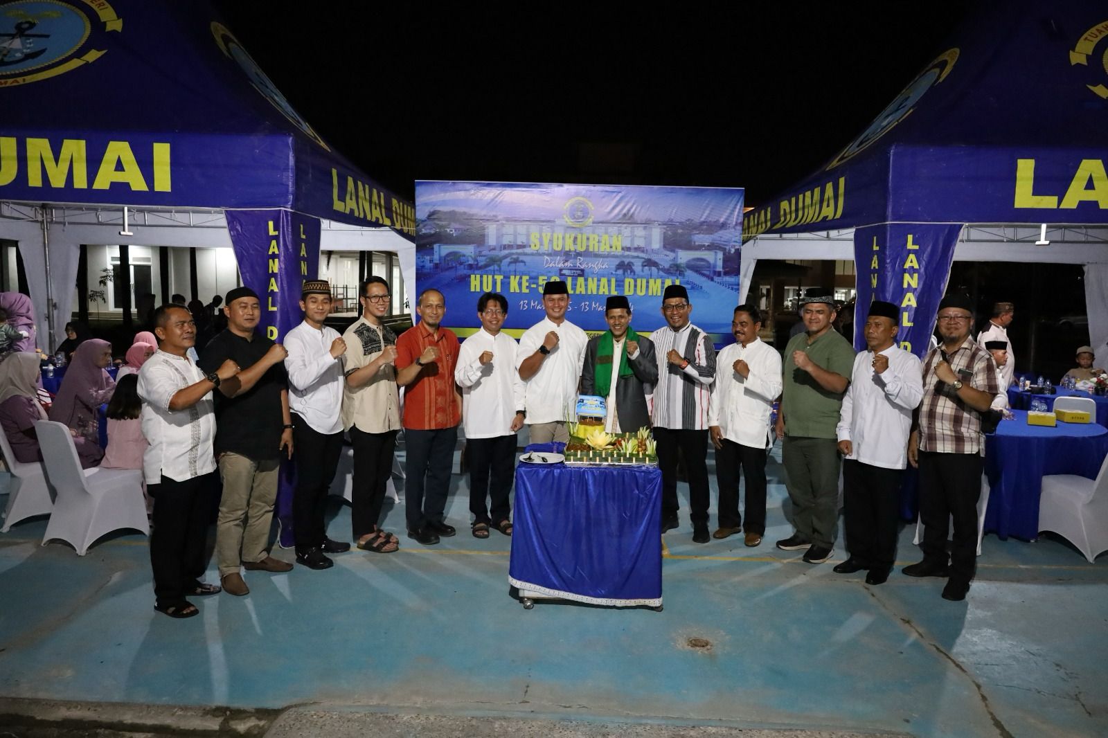 Selesai acara Buka Puasa Bersama, dilaksanakan kegiatan tasyakuran dalam rangka memperingati HUT Ke-59 Lanal Dumai dengan pemotongan tumpeng.