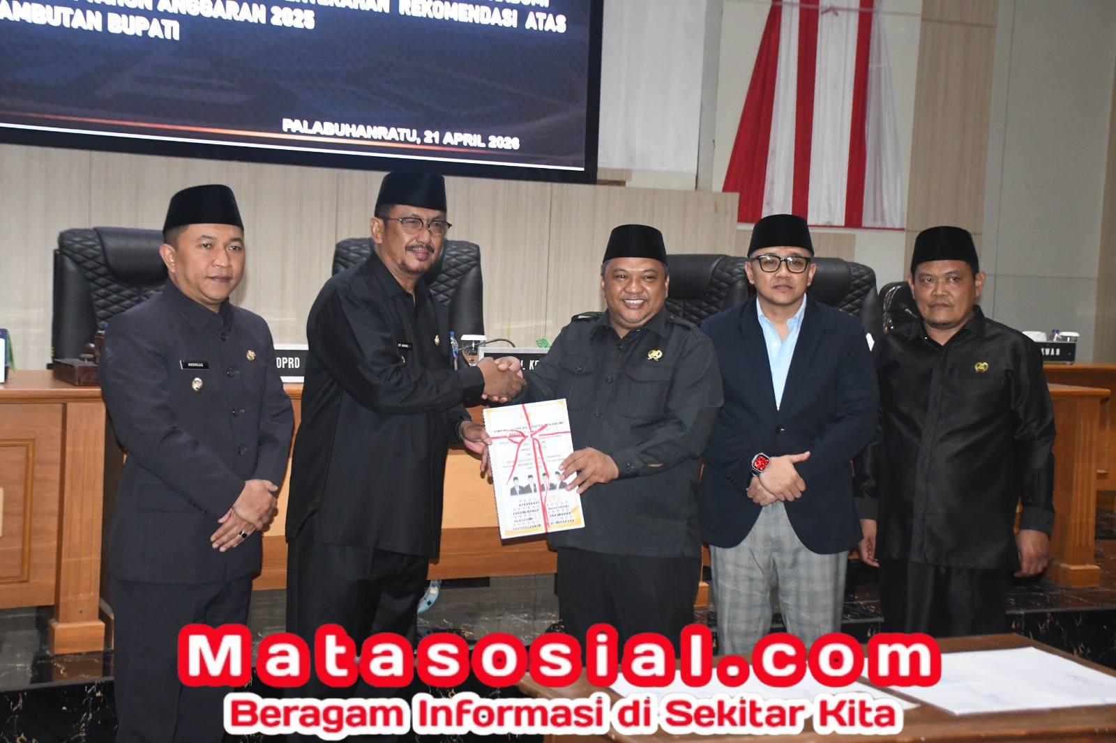 MataSosial.Com – Sukabumi, 21 April 2026 – Bupati Sukabumi H. Asep Japar bersama Wakil Bupati H. Andreas menghadiri rapat paripurna DPRD Kabupaten Sukabumi dengan agenda penyampaian rekomendasi atas Laporan Keterangan Pertanggungjawaban (LKPJ) Tahun Anggaran 2025. Rapat yang berlangsung di ruang sidang paripurna ini juga diisi dengan pengambilan keputusan, penandatanganan berita acara, serta penyerahan resmi rekomendasi DPRD kepada pemerintah daerah.
