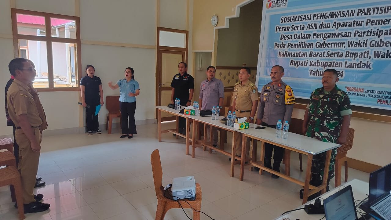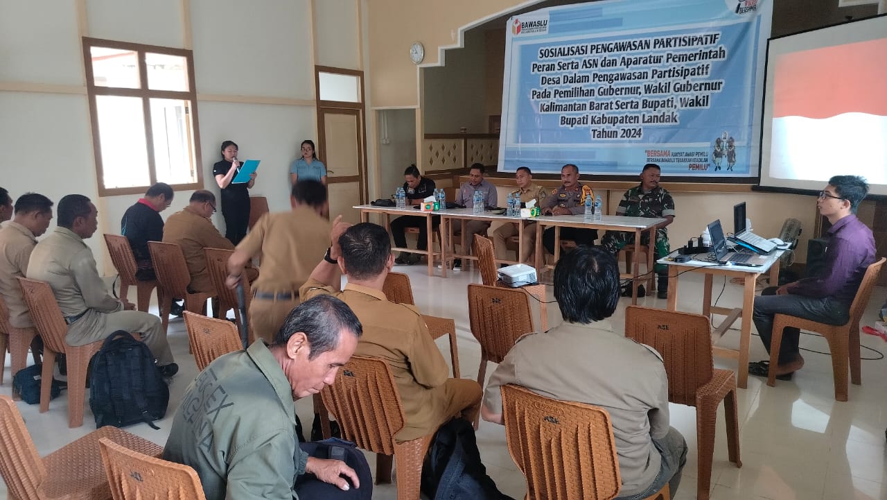 Matasosial.com LANDAK – AIR BESAR, Kapolsek Air Besar IPTU Muhammad Ibrahim Malik, S.H., menghadiri acara Kegiatan Sosialisasi Pengawasan Peran Serta ASN dan Aparatur Pemerintah Desa dalam Pengawasan Partisipasi pada Pemilihan Serentak Tahun 2024 yang diselenggarakan oleh PANWASLU Kecamatan Air Besar bertempat di Aula Susteran Paroki Santo Yohanes Maria Vianney Serimbu yang bertempat di Dusun Hanura Desa Serimbu Kecamatan Air Besar Kabupaten Landak. Selasa (10/9/24).