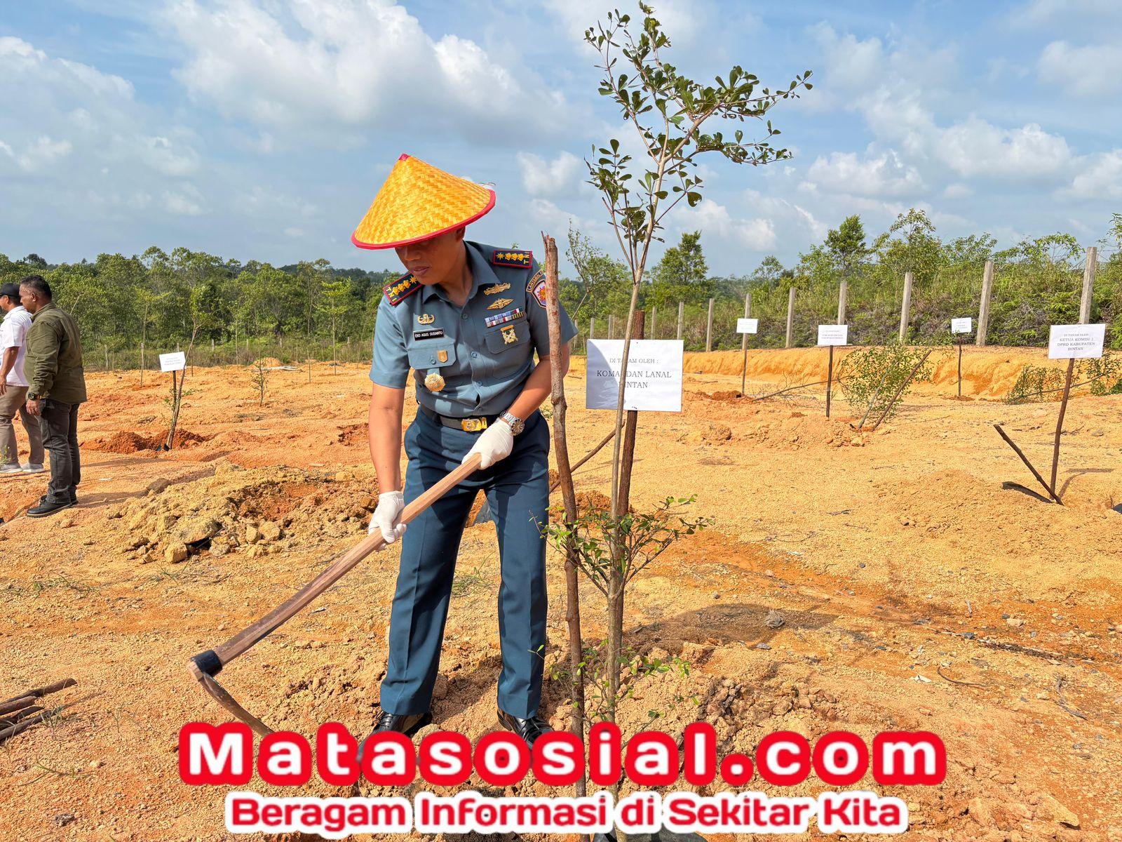 TNI AL, Bintan,- Bertempat di Embung DAS Kawal, Toapaya, Bintan, Komandan Lanal Bintan Kolonel Laut (P) Dr. Eko Agus Susanto, S.E., M.M., turut serta dalam Penanaman Pohon Kegiatan Rehabilitasi Lahan di Kabupaten Bintan Tahun 2025 disejalankan dengan Kegiatan Dana Bagi Hasil Sawit, bersama Bupati Bintan, Selasa (22/07/2025).