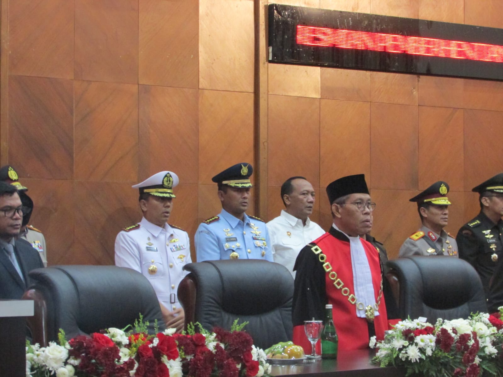 TNI AL, Sabang,- Komandan Lanal Sabang (Danlanal Sabang) Kolonel Laut (P) Gita Muharam, M.Sc., beserta Unsur Forkopimda Provinsi Aceh menghadiri Rapat Paripurna Dewan Perwakilan Rakyat Aceh Tahun 2024 dengan agenda Peresmian Pemberhentian Anggota Dewan Perwakilan Rakyat Aceh Masa Jabatan 2019-2024 dan Pengucapan Sumpah Anggota Dewan Perwakilan Rakyat Aceh Masa Jabatan 2024-2029, dengan pimpinan rapat Zulfadli, A.Md., selaku Ketua DPRA Sementara, bertempat di Ruang Rapat DPRA,