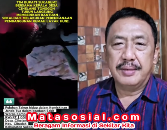 “Bismillahirrahmanirrahim. Assalamualaikum warahmatullahi wabarakatuh. Saya atas nama Pemerintah Kabupaten Sukabumi merasa prihatin melihat kondisi rumah yang ada di Desa Cihelang Tonggoh, Kecamatan Cibadak, yang sementara ini kurang layak untuk dihuni. Dan insyaallah dalam waktu dekat kami akan usulkan rumah tersebut untuk dibangun agar layak untuk dihuni. Terima kasih. Wassalamualaikum warahmatullahi.”