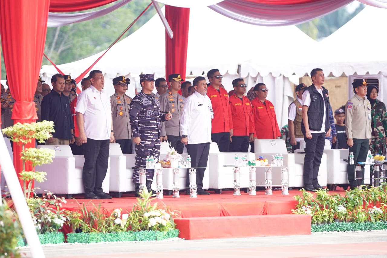Dalam sambutannya, Menteri Koordinator Bidang Politik dan Keamanan Republik Indonesia Jendral Polisi (Purn) Prof. Dr. Budi Gunawan, S.H., P.h.D., menekankan pentingnya kesiapsiagaan dan sinergi dalam menghadapi bencana Karhutla.
