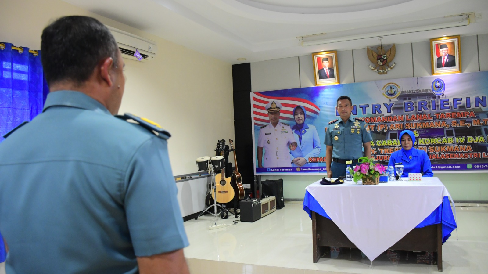 Dalam kesempatan Entry Briefing tersebut, Komandan Lanal Tarempa Letkol Laut (P) Ari Sukmana, S.E., M.Tr. Opsla., menyampaikan perkenalan awal tentang diri pribadi, keluarga dan latar belakang penugasan sebelum pada akhirnya saat ini menjabat sebagai Komandan Lanal Tarempa. Komandan Lanal Tarempa juga menjelaskan kembali tentang tugas pokok Pangkalan sebagai salah satu Sistem Senjata Terpadu (SSAT) yaitu sebagai pendukung dan melayani Kapal Republik Indonesia (KRI) yang singgah atau lego di Perairan Tarempa serta tidak kalah pentingnya tugas Lanal Tarempa yaitu Penegakan Hukum di Laut.