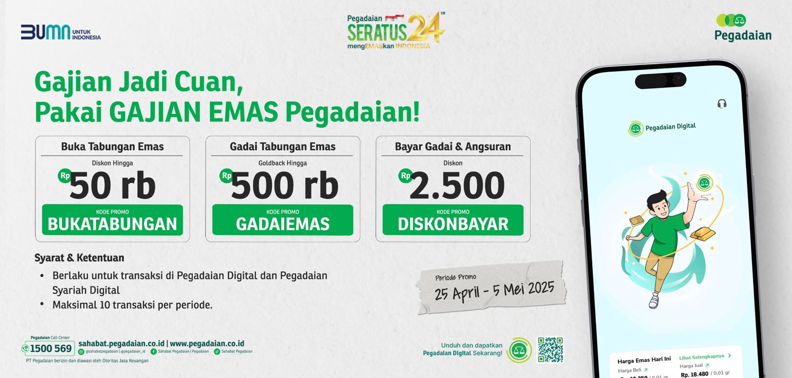 Berikut detail promo Gajian Emas Pegadaian periode 25 April hingga 5 Mei 2025: