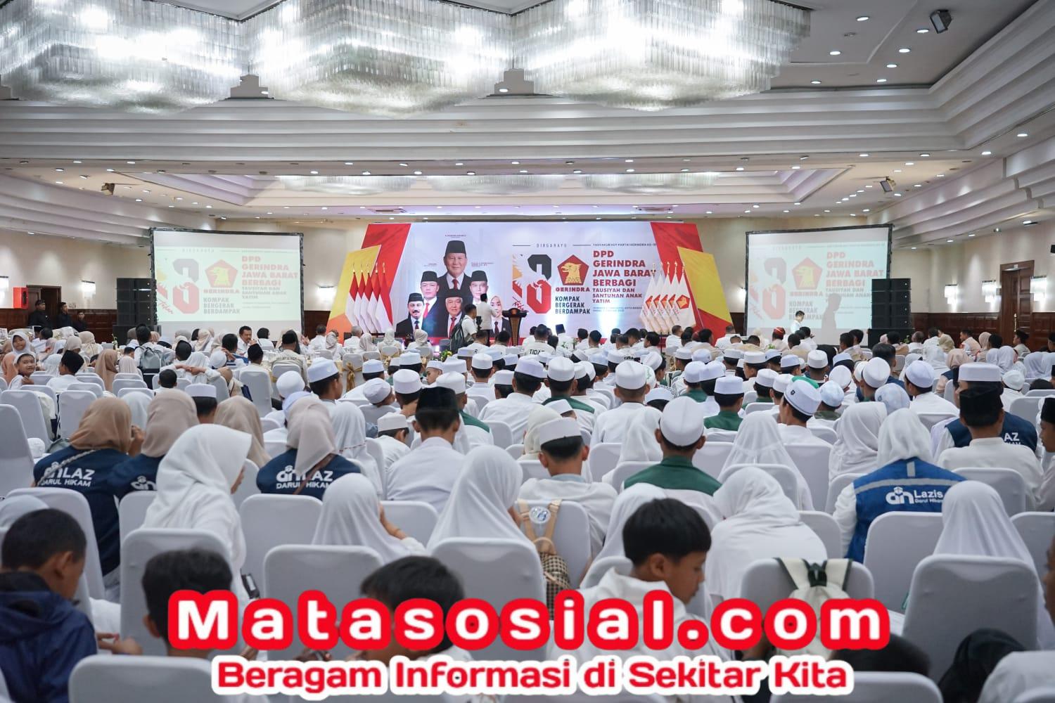 Matasosial.com,- Bandung — Dewan Pimpinan Daerah (DPD) Partai Gerindra Jawa Barat memperingati Hari Ulang Tahun (HUT) ke-18 Partai Gerindra melalui kegiatan bertajuk “DPD Gerindra Jawa Barat Berbagi: Tausiyah dan Santunan Anak Yatim” di Hotel Horison, Kota Bandung, Kamis, 5 Februari 2026. Peringatan HUT Gerindra kali ini mengusung tema “Kompak, Bergerak, Berdampak,” yang menekankan konsolidasi internal sekaligus kehadiran sosial partai di tengah masyarakat.