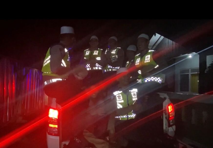 Galery Foto Giat Satuan Lalulintas Polres Sukabumi bangunkan warga untuk sahur sambil membagikan makanan berupa nasi kotak kepada warga masyarakat di seputaran Kampung Kiara Lawang Desa Citepus Kecamatan Palabuhanratu Kabupaten Sukabumi Jawa Barat, Jumat (31/03/03) sekira pukul 03.00 wib dini hari.