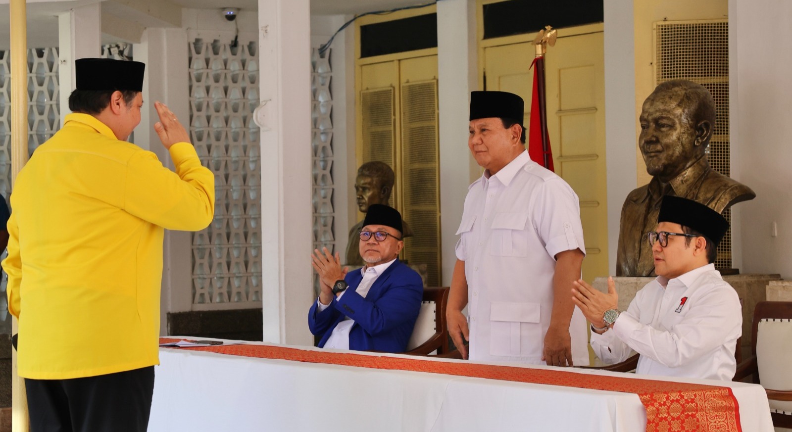 Jakarta — Partai Golkar dan Partai Amanat Nasional (PAN) resmi menyatakan dukungan kepada Ketua Umum Partai Gerindra dan Menteri Pertahanan RI Prabowo Subianto sebagai bakal calon presiden 2024, Minggu (13/08/2023) di Gedung Proklamasi Imam Bonjol, Jakarta.