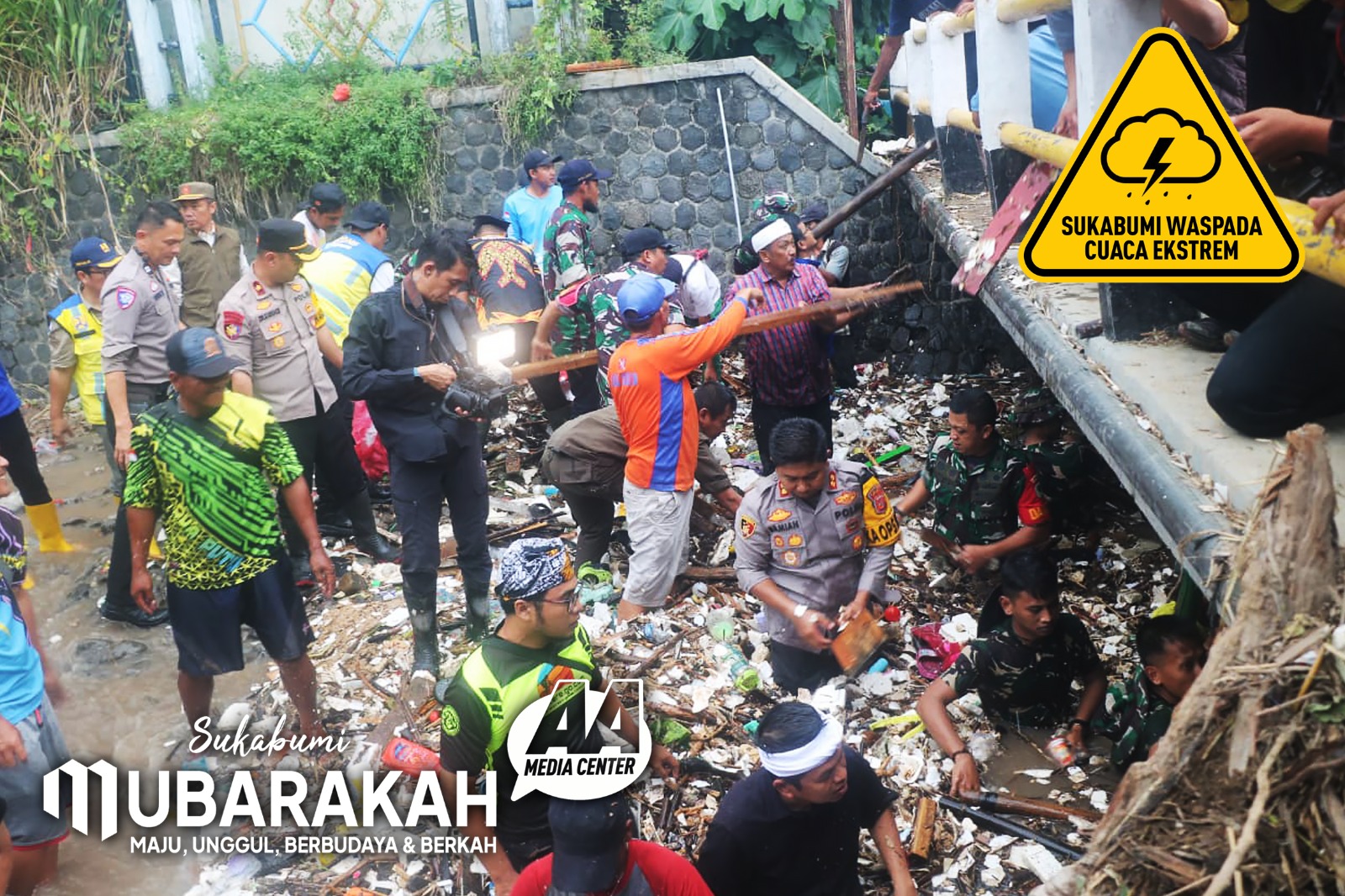 Palabuhanratu, 8 Maret 2025 – Pada Sabtu (8/3/2025), Gubernur Jawa Barat Dedi Mulyadi bersama Bupati Sukabumi H. Asep Japar, memimpin pembersihan sampah yang menumpuk di aliran Sungai Cipalabuan setelah banjir bandang melanda pada Kamis malam (6/3/2025). Pembersihan ini dilakukan di Tempat Pelelangan Ikan Palabuhanratu, Kecamatan Palabuhanratu.