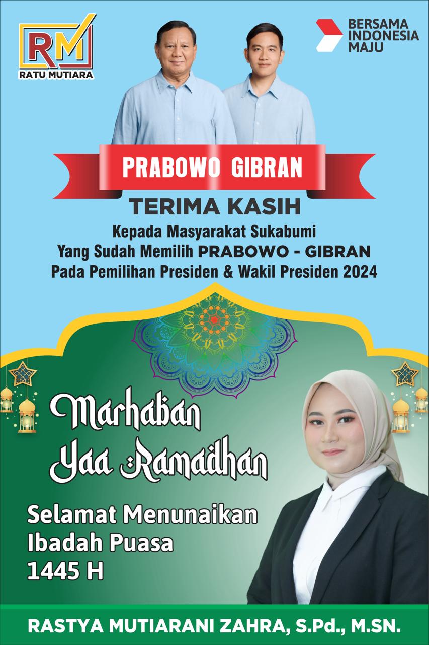 Sukabumi – Tokoh Pendidikan darai Kaum Milenial Rastya Mutiara Zahra S.Pd., M.Sn mengucapakn selamat beribah Puasa “Selamat datang Bulan Suci Ramadhan 1445 H/2024 M. Semoga kita semua selalu dirahmati Allah Subhanahu wa ta’ala dan dilapangkan rezeki kita dalam ibadah ini, serta selalu dimudahakan urusan kita di tahun 2024 dan seterusnya, Aamiin,” ucap Rastya, Sabtu 09 Maret 2024.