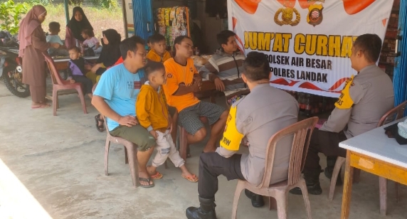 Matasosial.com LANDAK – AIR BESAR, Polsek Air Besar Polres Landak laksanakan Jumat Curhat yaitu kegiatan yang dilakukan berupa menerima masukan dan menampung aspirasi serta keluhan masyakarat kali ini kegiatan tersebut di laksanakan di warung milik Arman Dusun Hanura Desa Serimbu Kecamatan Air Besar Kabupaten Landak, jumat (29/3/24).