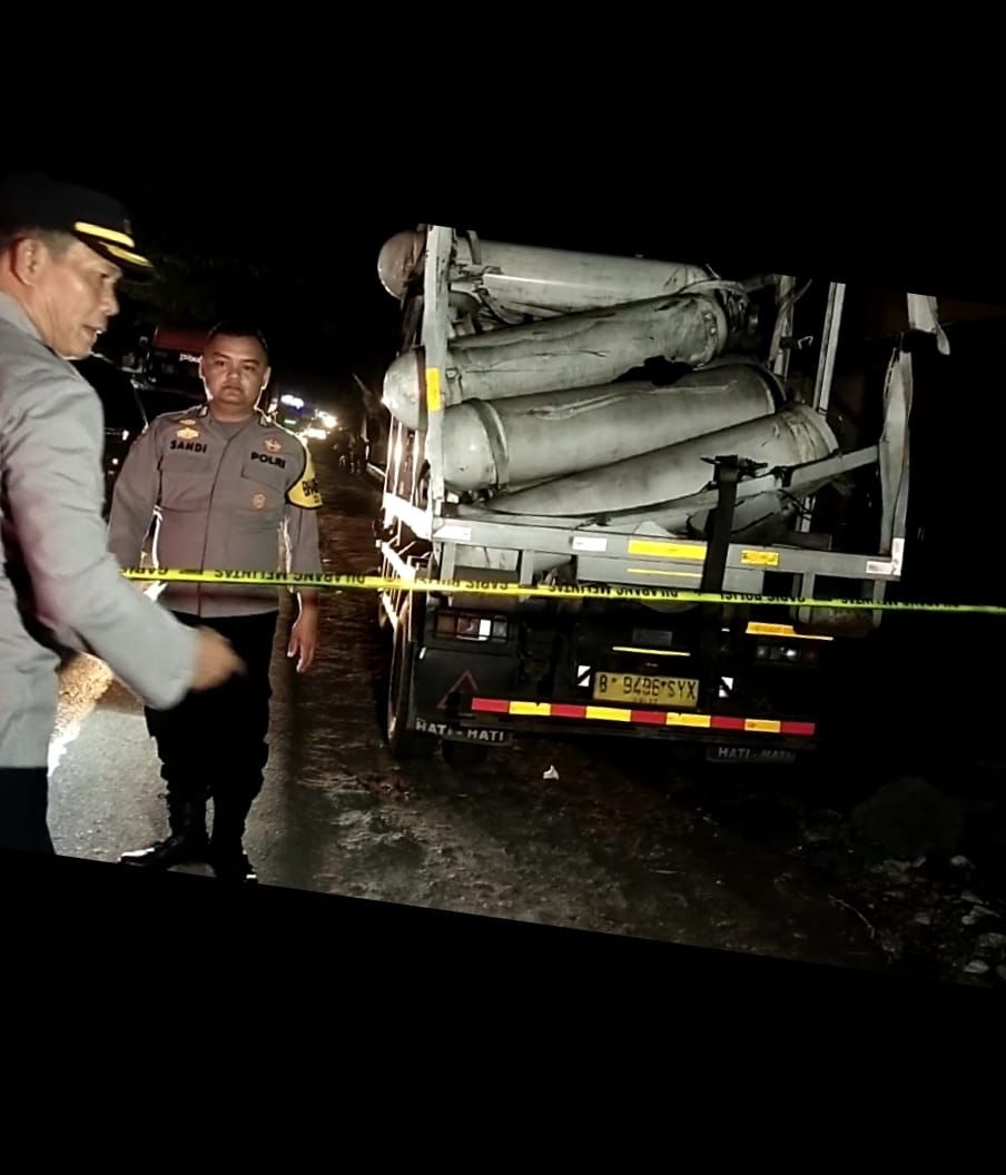 Matasosial.com, Sukabumi – Kapolsek Cibadak Kompol Ridwan bin Ishak bersama anggotanya amankan lokasi kejadian sebuah Truk Isuzu pengangkut Tabung Gas diduga mengalami kebocoran yang menyebabkan ledakan sekira Pukul 17.40 Wib di Kp. Lodaya Desa Karangtengah Kecamatan Cibadak Kabupaten Sukabumi. Senin (27/11/23).