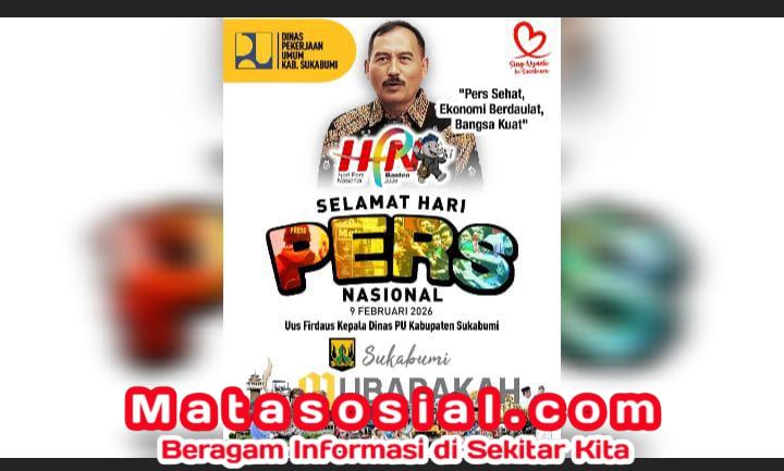 Kepala Dinas Pekerjaan Umum Kabupaten Sukabumi, Drs. Uus Firdaus, MM, menyampaikan ucapan Selamat Hari Pers Nasional 2026. Beliau menegaskan bahwa insan pers punya kontribusi luar biasa dalam menyampaikan informasi yang akurat, berimbang, dan edukatif, terutama terkait pembangunan infrastruktur serta pelayanan publik di Kabupaten Sukabumi.