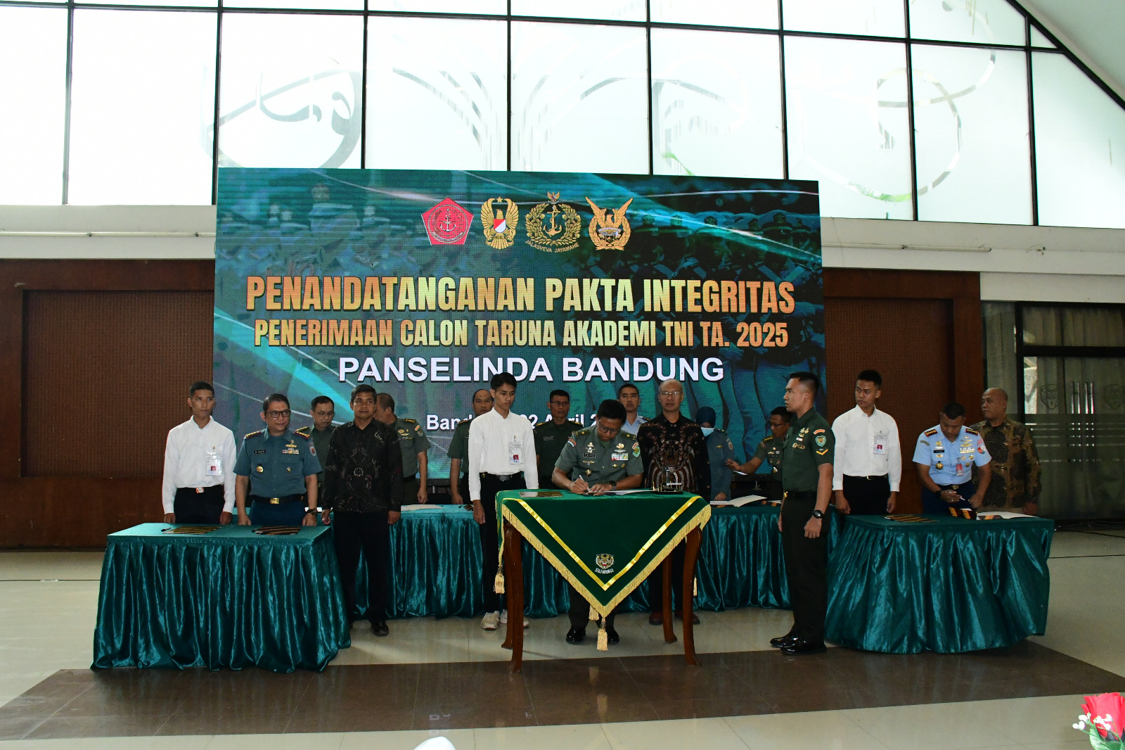 TNI AL, Bandung,- Komandan Lanal Bandung Kolonel Laut (P) Muhammad Taufik, M.Tr.Hanla., M.M., menghadiri Penandatanganan Pakta Integritas Calon Taruna Akademi TNI TA. 2025 yang dipimpin oleh Irdam III/Slw Brigjen TNI Trias Wijanarko, S.I.P., M.H.I., mewakili Pangdam III/Slw, bertempat di Aula Graha Tirta Siliwangi, Jalan Lombok No.10, Kota Bandung, Selasa (22/04/2025).