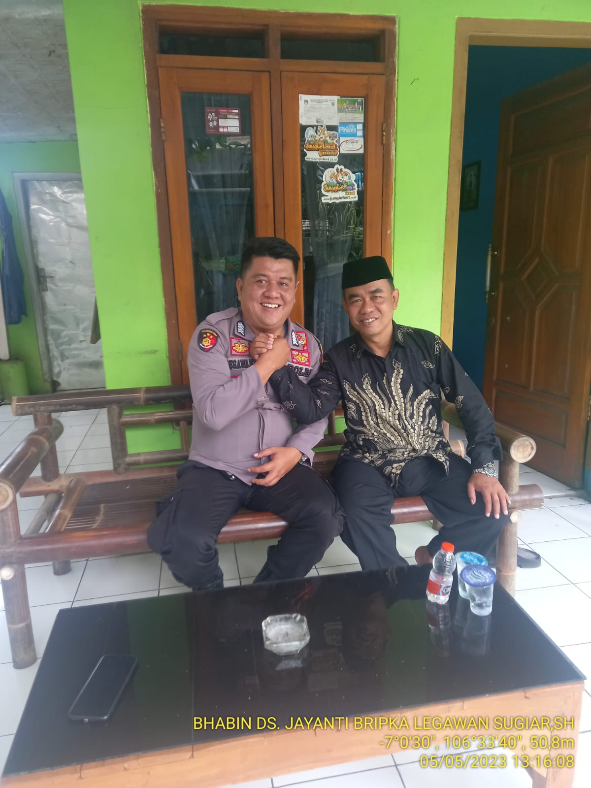 Polsek Palabuhanratu – Bhabinkamtibmas Desa Jayanti kunjungi kediaman ketua MUI Desa Jayanti dalam program Kapolres Sukabumi, Jum,at (05/05/23).