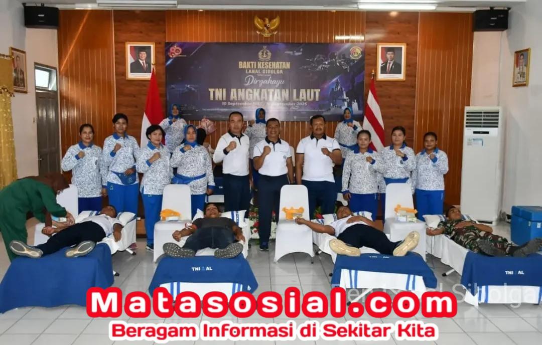 TNI AL, Sibolga,- Dalam rangka memperingati Hari Ulang Tahun Ke-80 Tentara Nasional Indonesia Angkatan Laut (TNI AL) Tahun 2025, Pangkalan TNI AL (Lanal) Sibolga menggelar rangkaian kegiatan sosial dan kesehatan serta olahraga bersama yang berlangsung dengan penuh semangat dan kebersamaan, Senin (08/09/2025).