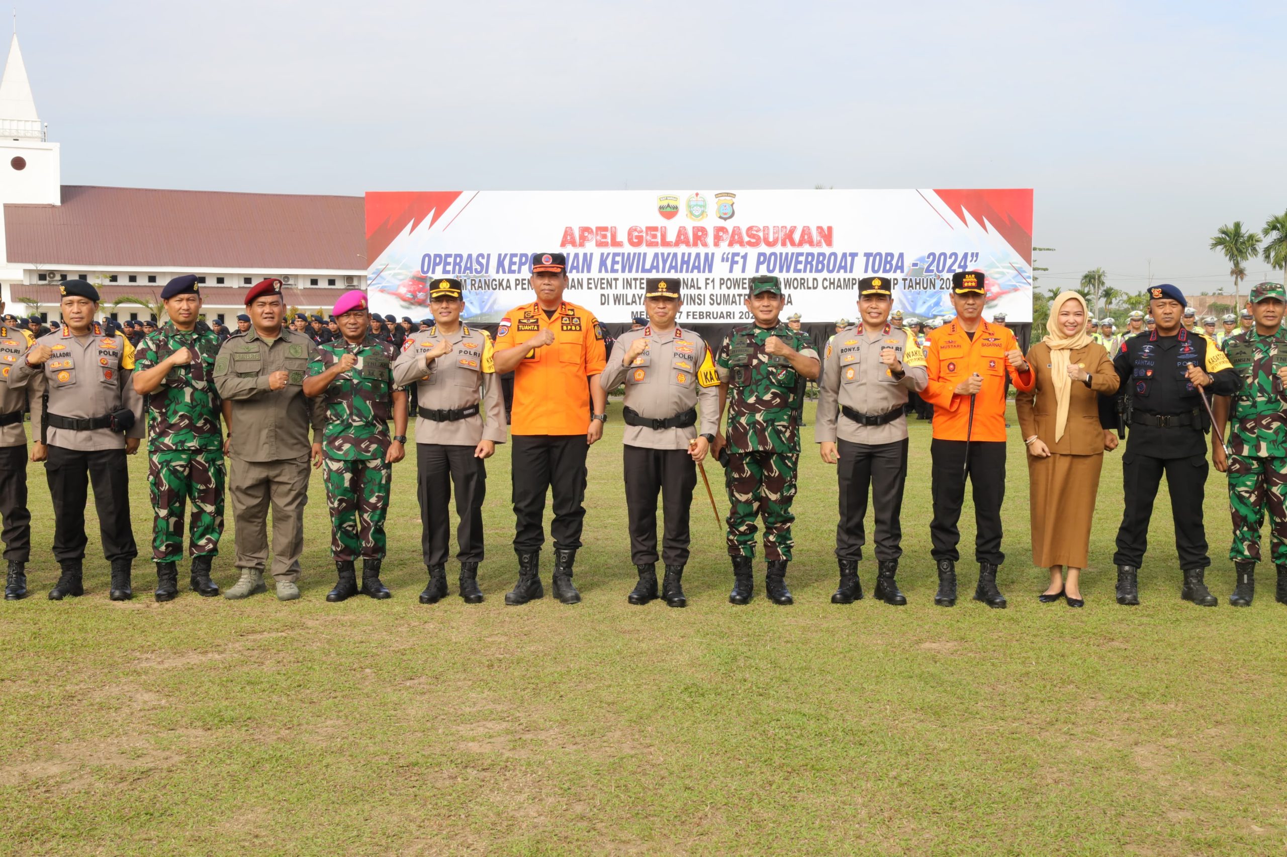 TNI AL, Belawan,- Komandan Pangkalan Utama TNI Angkatan Laut I (Danlantamal I) Brigjen TNI (Mar) Jasiman Purba, S.E., CHRMP., diwakili oleh Wadan Lantamal I Kolonel Marinir Sudin Kaban, S.H, M.M., mengikuti Apel Gelar Pasukan dalam rangka persiapan pengamanan event F1 Power Boat yang akan diselenggarakan pada 2-3 Maret 2024 di Danau Toba, Sumut, bertempat di Lapangan Sepak Bola Mapolda Sumut, Jalan Sisingamangaraja, Medan, Sumatera Utara, Selasa (27/2/2024).