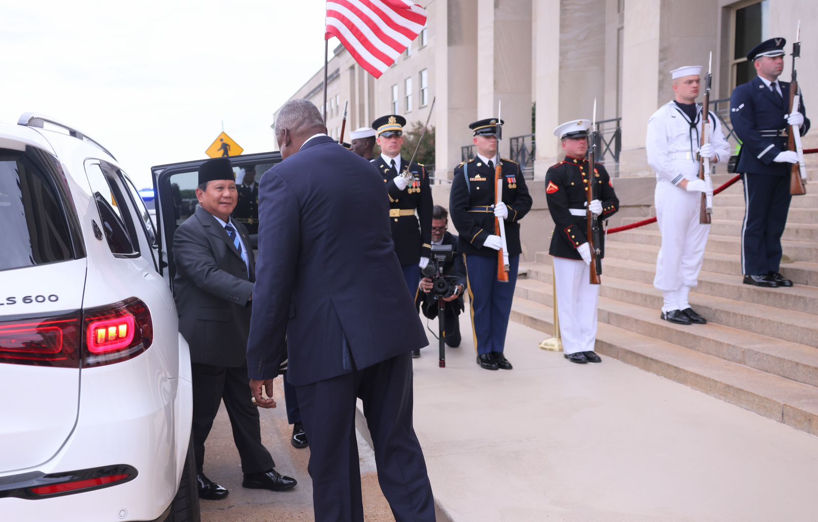 Dalam kunjungan itu Prabowo langsung diterima oleh Austin saat tiba. Kemudian keduanya bercengkrama dan memasuki gedung.