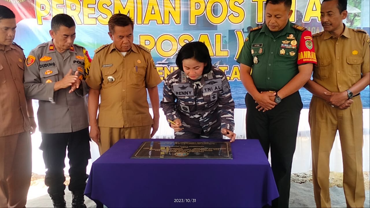 Matasosial.com, Sukabumi – Bertempat di Kp. Cibuaya Desa. Pangumbahan Kec. Ciracap Kab. Sukabumi, pada titik Koordinat LS 07.21.23 – BT 106.24.15, berlangsung Peresmian Pos TNI AL (POSAL) Ujunggenteng oleh Komandan Pangkalan TNI AL Bandung (Kolonel Laut (KH/W) Renny Setiowati, S.T., M. Sc., M.Tr.Hanla) berdasarkan Peraturan Kepala Staf TNI Angkatan Laut Perkasal Nomor 12 Tahun 2023, tanggal 06 Maret 2023 tentang Pembentukan Pos Tentara Nasional Indonesia Angkatan Laut, dalam kegiatan tersebut dihadiri lk 30 orang, Selasa 31 Oktober 2023.
