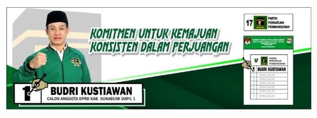 “Jangan Lupa Coblos Budri Kustiawan Caleg No 1, Milenial Mari Coblos No 1 Budri Kustiawan Caleg DPRD Sukabumi Dapil 1 dari PPP, Budri Kustiawan Caleg DPRD Sukabumi Dipastikan Lolos DPRD Sukabumi,” ucap Irman.