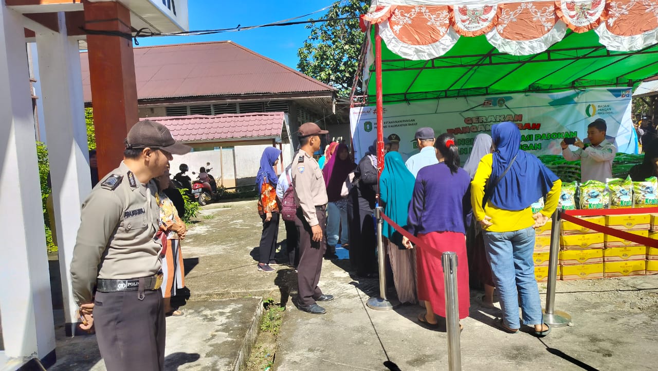 Matasosial.com_LANDAK – AIR BESAR, Personil Polsek Air Besar Polres Landak Polda Kalbar melakukan pengamanan Pelaksanaan Kegiatan Gerakan Pangan Murah tersebut di selenggarakan oleh Dinas Ketahanan Pangan Provinsi Kalimantan Barat yang bekerja sama dengan CV Lintas Samudra Berjaya, Bertempat di Kantor Camat Air Besar, Kabupaten Landak. Rabu (6/12/2023).