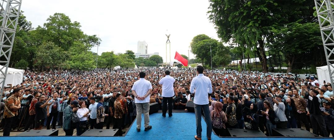 Matasosial.com, Jakarta – Capres nomor urut 2, Prabowo Subianto mendengarkan langsung keluhan para ojek online (ojol) di acara deklarasi untuk Prabowo-Gibran, di Lapangan Banteng, Pasar Baru, Jakarta, Jumat, (19/1).