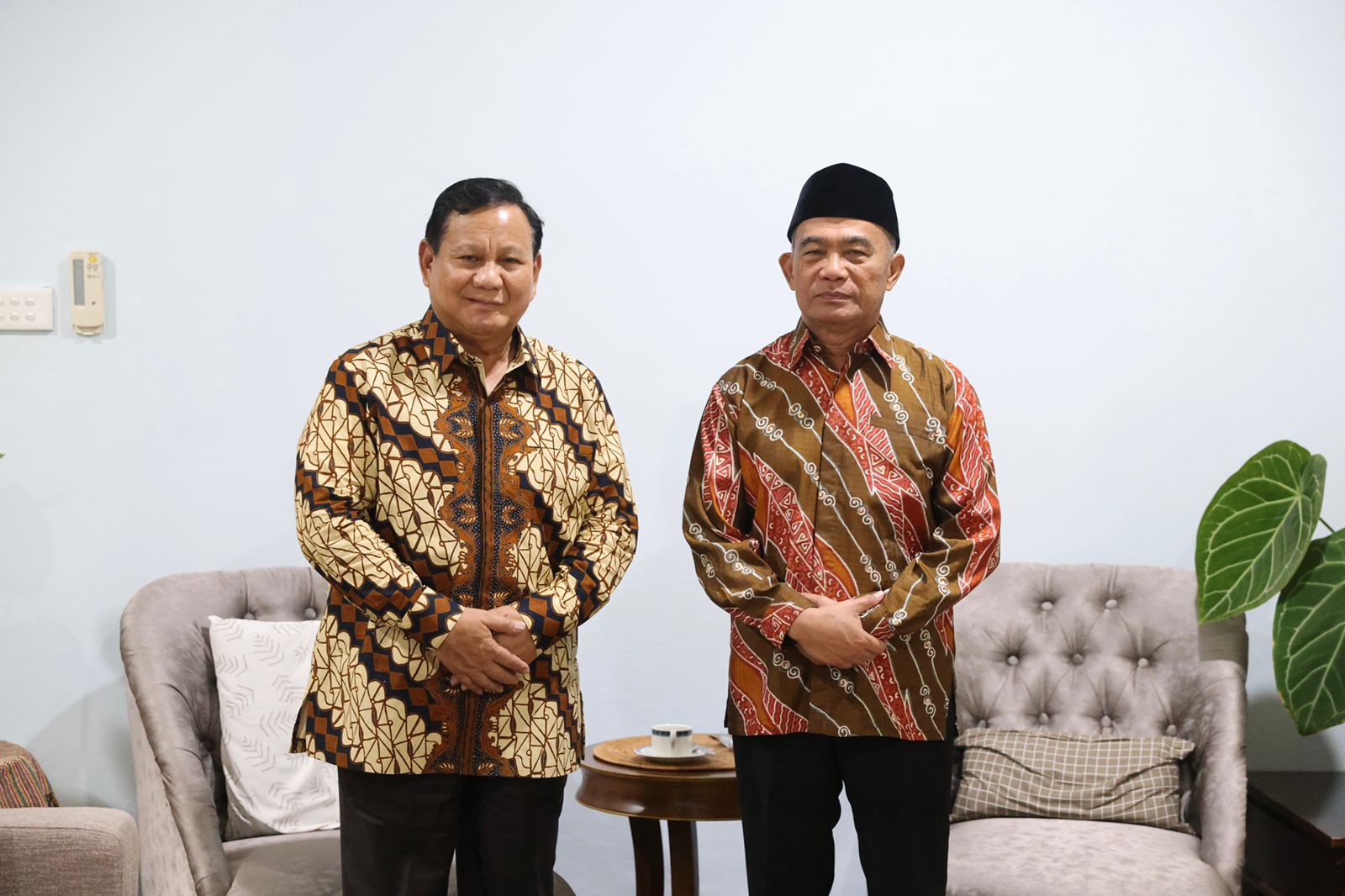Kehadiran Prabowo disambut langsung oleh Muhadjir. Keduanya berjabat tangan erat dan saling meminta maaf.