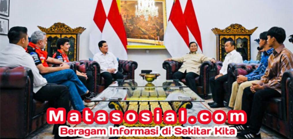 Matasosial.com, Jakarta,- Presiden Prabowo Subianto menekankan pentingnya pengembangan sport tourism serta pembinaan atlet nasional saat menerima kunjungan juara dunia MotoGP Marc Marquez bersama dua pembalap muda Indonesia, Mario Aji dan Veda Ega Pratama, di Istana Merdeka, Jakarta, pada Selasa, 30 September 2025.