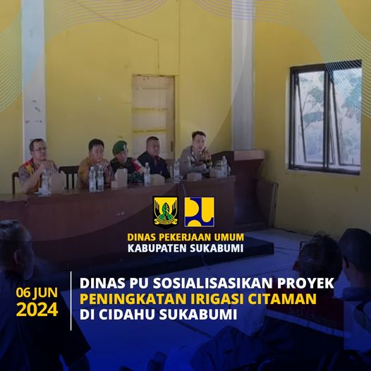 Sukabumi – Dinas Pekerjaan Umum (DPU) Kabupaten Sukabumi mengadakan sosialisasi peningkatan jaringan irigasi bertempat di Kantor Desa Tangkil, Kecamatan Cidahu, Kamis (6/6/2024). Sosialisasi dilaksanakan sebelum dimulainya pekerjaan proyek peningkatan irigasi di Daerah Irigasi (DI) Citaman, Desa Tangkil.