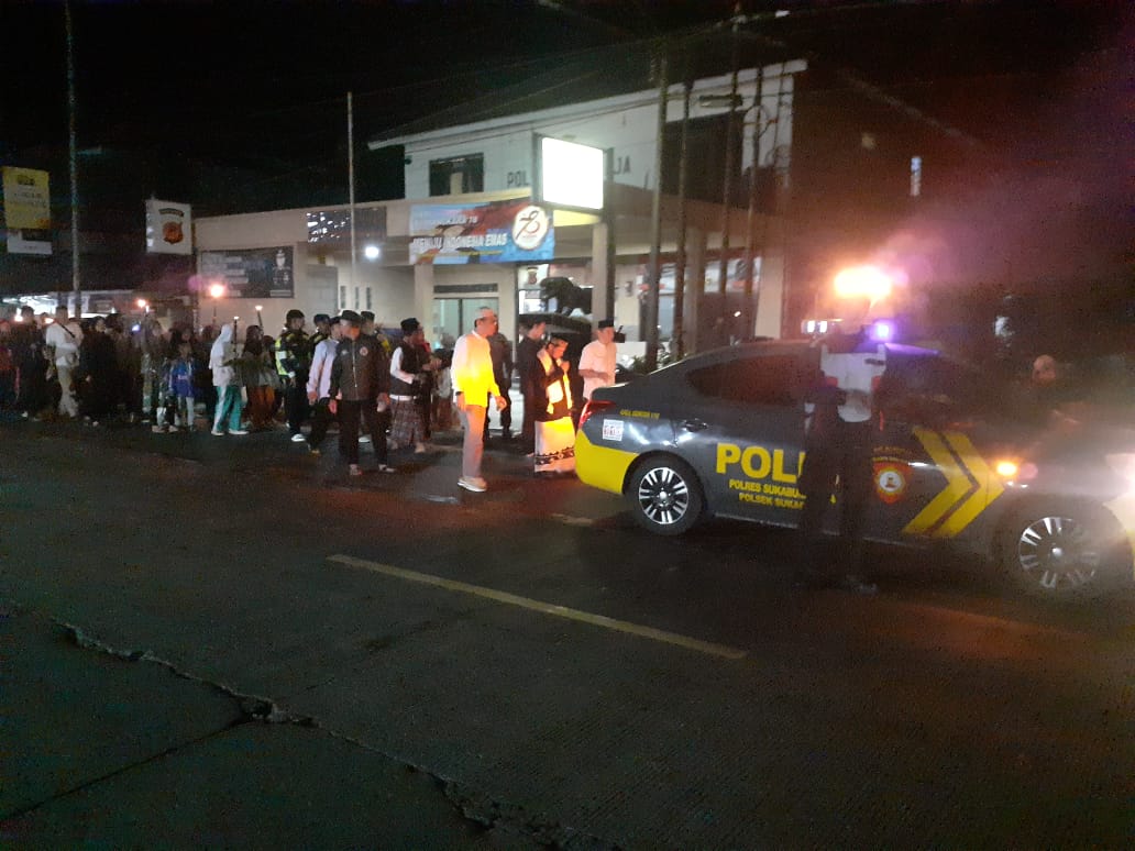 Sukabumi – Polsek Sukaraja Polres Sukabumi Kota melaksanakan pengamanan pawai obor dalam rangka menyambut Tahun Baru Islam 1 Muharram 1446 H.