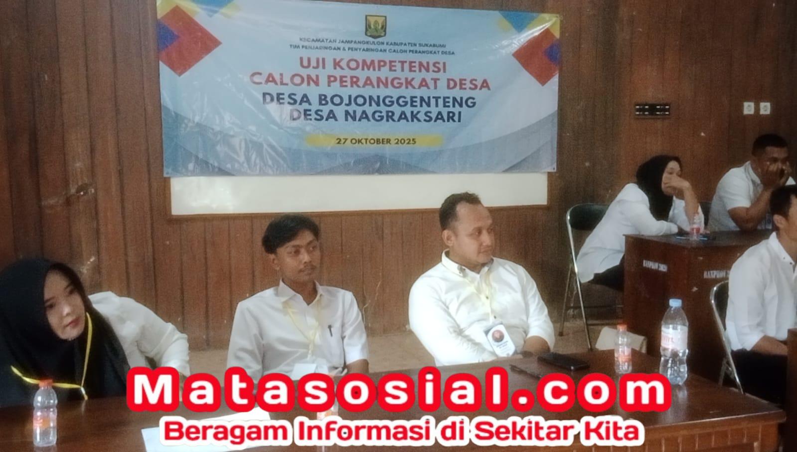 Matasosial.com, – Jampangkulon, Sukabumi – Uji kompetensi calon perangkat desa untuk Desa Bojonggenteng dan Desa Nagraksari telah berhasil dilaksanakan di Aula Desa Bojonggenteng, Kecamatan Jampangkulon, Kabupaten Sukabumi. Kegiatan ini diikuti oleh delapan peserta yang berdedikasi, terdiri dari tiga calon perangkat untuk Desa Bojonggenteng dan lima calon perangkat untuk Desa Nagraksari.