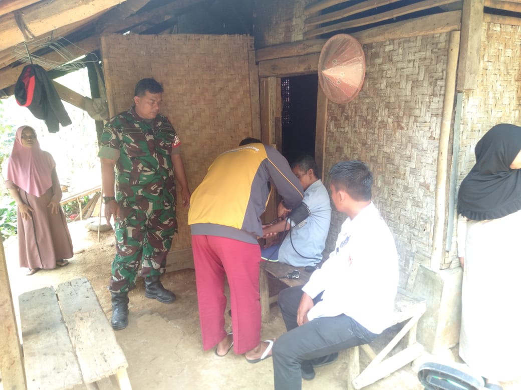 Sukabumi – Koramil 0622-04/Cikidang Serka Mulyadi Babinsa Desa Cikarae Thoyibah melaksanakan kegiatan pendampingan Puskesmas Keliling di Wilayah Desa Cikarae Thoyibah, Kamis 21 September 2023.