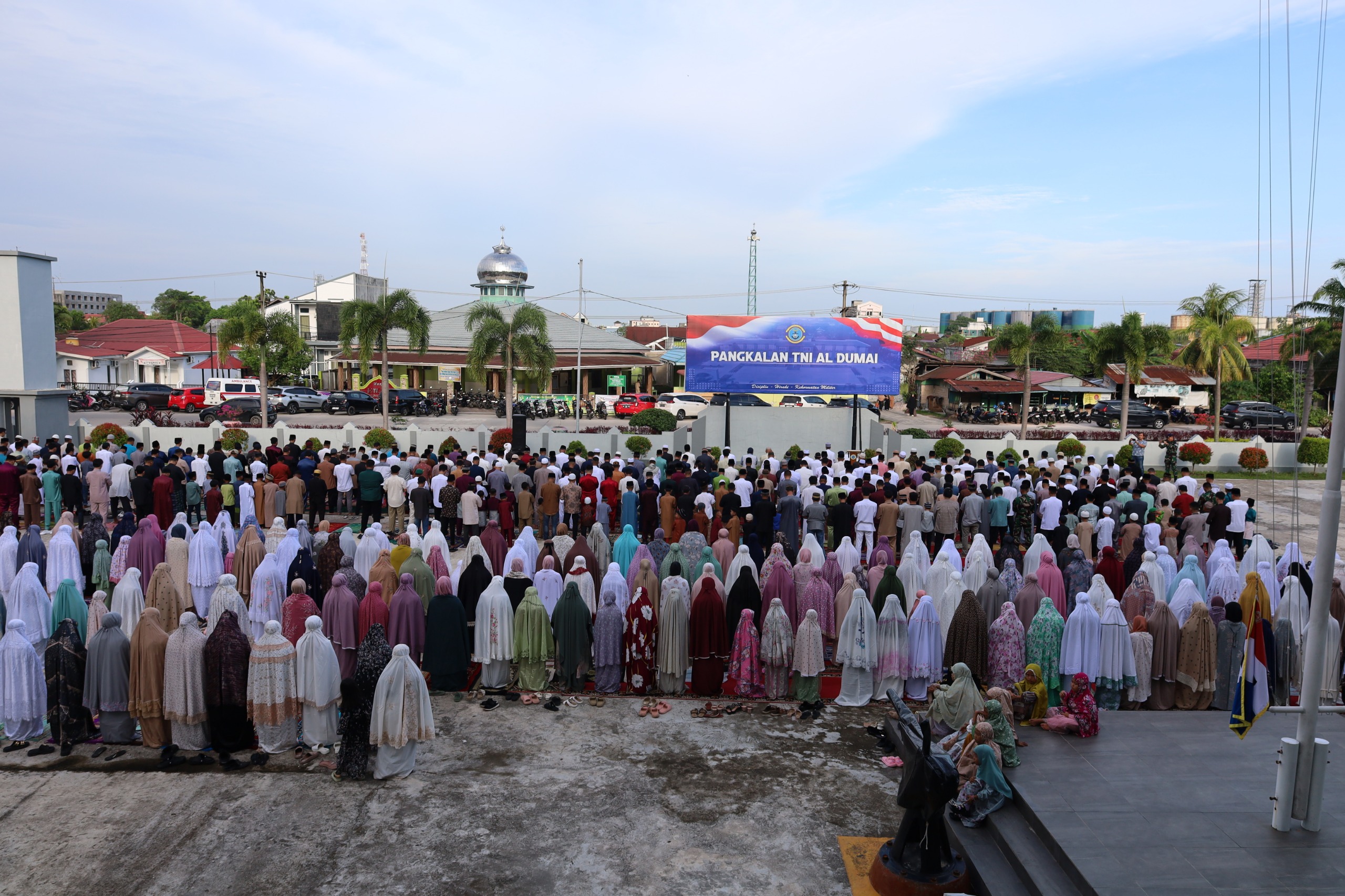 Hari ini, Prajurit dan Keluarga Nesar Pangkalan TNI AL Dumai berkumpul untuk melaksanakan Sholat Idul Fitri bersama-sama. Pelaksanaan Sholat Idul Fitri ini merupakan ungkapan rasa syukur kepada Tuhan Yang Maha Kuasa atas selesainya umat muslim melaksanakan ibadah puasa yang dilakukan selama satu bulan penuh.