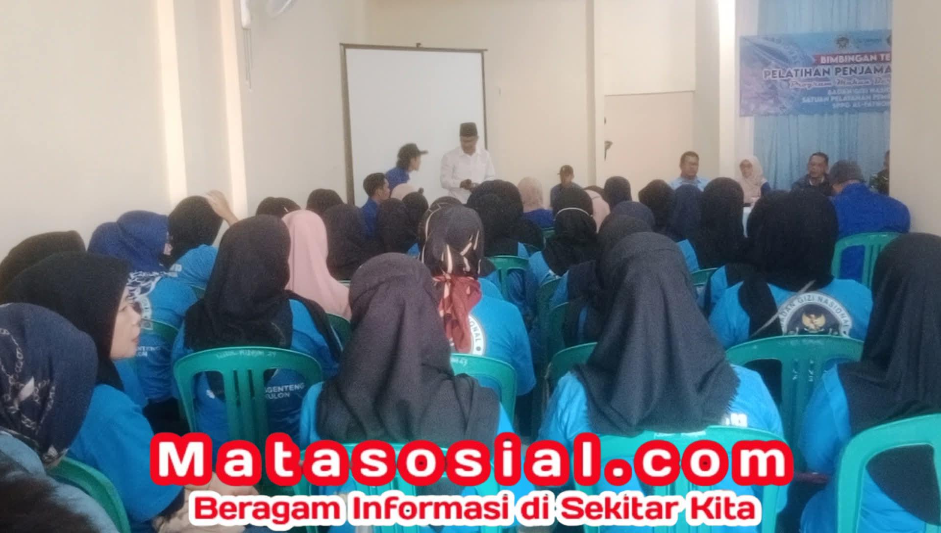 Matasosial.com,- Sukabumi – Dalam rangka mendukung program nasional Makan Bergizi Gratis (MBG), Satuan Pelayanan Pemenuhan Gizi (SPPG) Al-Fathonah di Kecamatan Jampangkulon, Kabupaten Sukabumi, menggelar Bimbingan Teknis (Bimtek) Pelatihan Penjamah Makanan. Kegiatan ini bertujuan membekali para penjamah makanan dengan pengetahuan dasar tentang higienitas, sanitasi pangan, serta teknik pengolahan makanan yang aman, guna menjaga kualitas nutrisi bagi penerima manfaat. Acara berlangsung pada Selasa (14/10/2025).