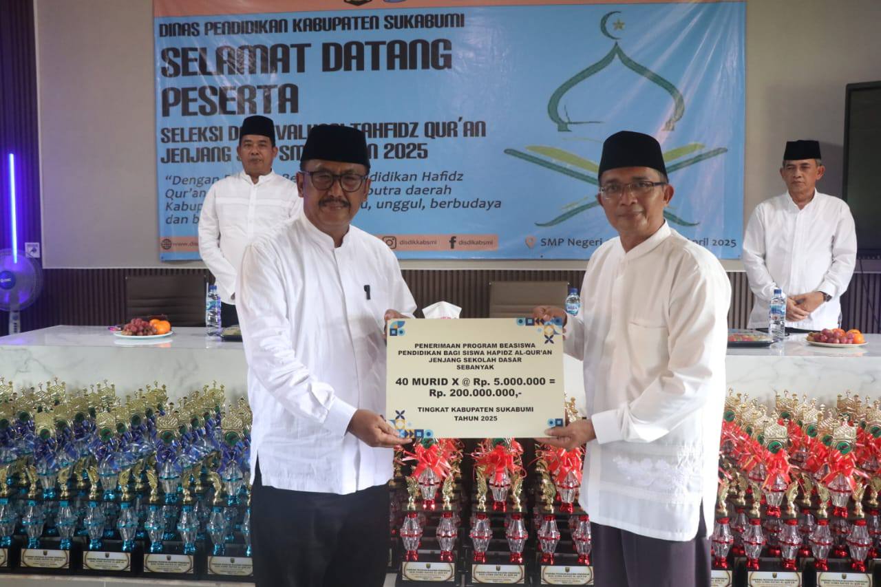 “Saya bangga Sukabumi punya generasi muda yang cinta Alquran. Terbukti dari semangat luar biasa para hafidz dan hafidzah SD dan SMP yang siap ikut seleksi,” kata H. Asep Japar waktu memberikan arahan kepada peserta lomba hafidz Alquran tingkat SD dan SMP se-Kabupaten Sukabumi di SMPN 1 Cikembar, Jumat, 25 April 2025.