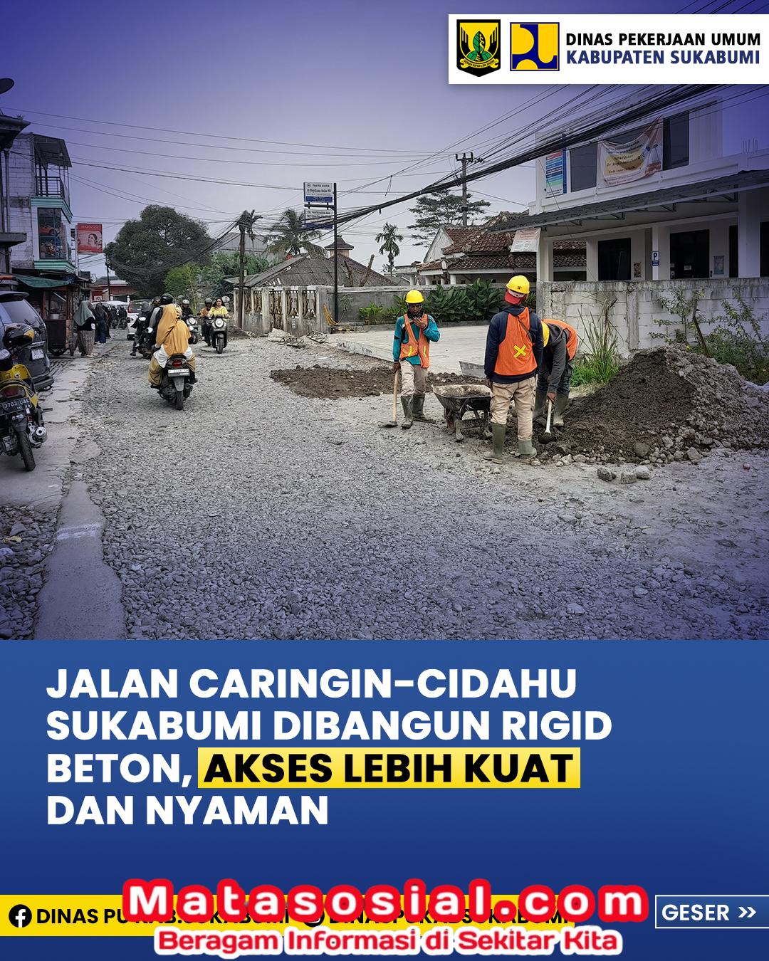 Dinas Pekerjaan Umum (PU) Kabupaten Sukabumi melalui UPTD Wilayah III Cicurug sedang mengerjakan proyek prioritas berupa rekonstruksi jalan rigid beton di ruas Caringin–Cidahu. Kepala UPTD PU Wilayah III, Uus Iskandar, menjelaskan bahwa pekerjaan ini dirancang secara teknis dan sistematis untuk menghasilkan infrastruktur yang kokoh dan tahan lama.