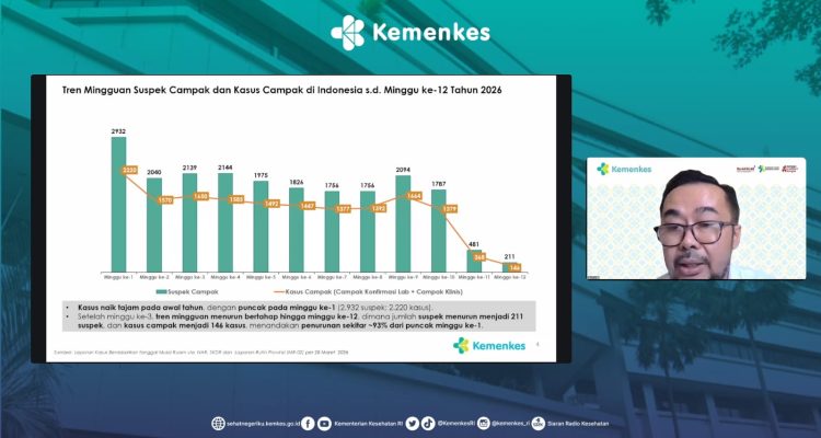 Jakarta — Kementerian Kesehatan (Kemenkes) mencatat penurunan drastis pada kasus penyakit campak