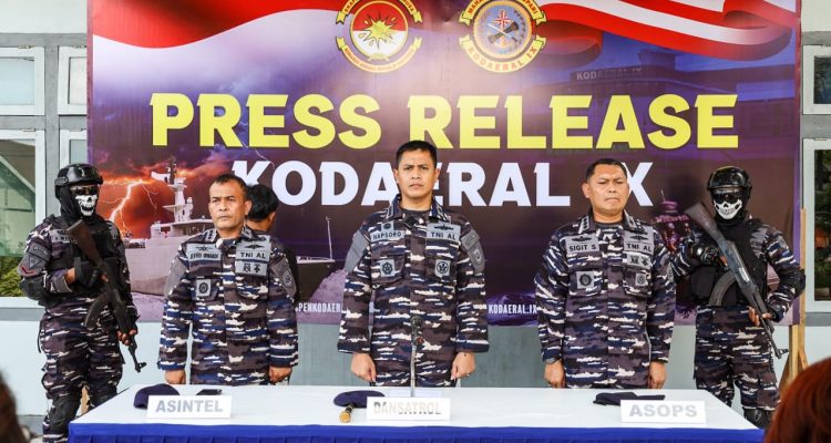 TNI AL, Ambon,- Kodaeral IX mengadakan Press Release terkait penangkapan KM. Berkah