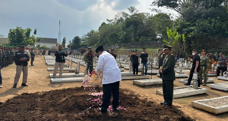 Magelang – Menteri Pertahanan Prabowo Subianto menghadiri pemakaman Mayjen TNI (Purn) Mulclis