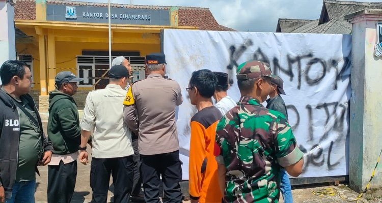 Matasosial.com, Sukabumi – Pintu pagar Kantor Desa Cihamerang Kecamatan Kabandungan Kabupaten Sukabumi