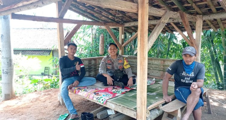 Sukabumi – Bhabinkamtibmas mendengarkan curhatan masyarakat tentang kekompakan untuk menjaga keamanan desa