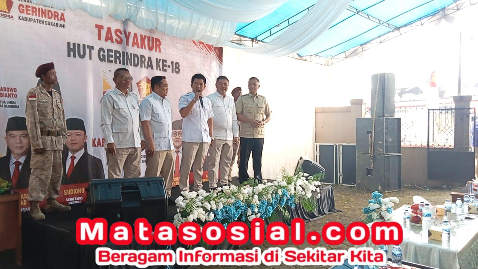 Matasosial.com,- Sukabumi, 6 Februari 2026 – Peringatan Hari Ulang Tahun (HUT) ke-18 Partai Gerindra di Kabupaten Sukabumi berlangsung penuh makna dengan nuansa kebersamaan. Acara tasyakur yang digelar di Aula DPC Partai Gerindra, Jalan Pondok Leungsir, Desa Ci Sande, Kecamatan Cantayan, dirangkaikan dengan santunan kepada 60 anak yatim.