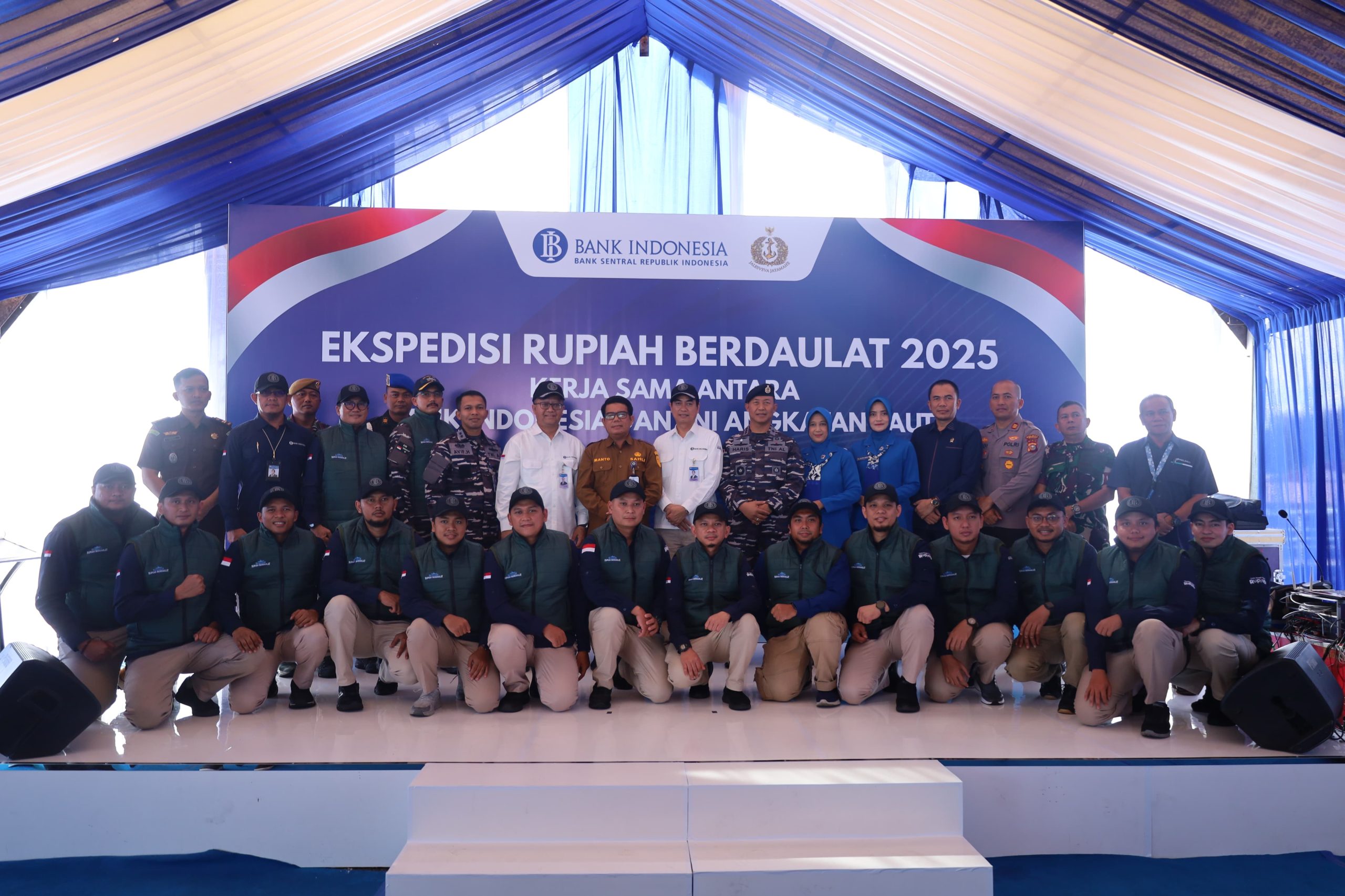 TNI AL, Dumai,- Bank Indonesia (BI) bersama Pangkalan TNI Angkatan Laut (Lanal) Dumai luncurkan Tim Expedisi Rupiah Berdaulat (ERB) Tahun 2025. Program yang bertujuan untuk memastikan ketersediaan uang layak edar diseluruh wilayah Negara Kesatuan Republik Indonesia, khususnya di wilayah 3T (Terdepan, Terluar, dan Terpencil), Selasa (6/5/2025).