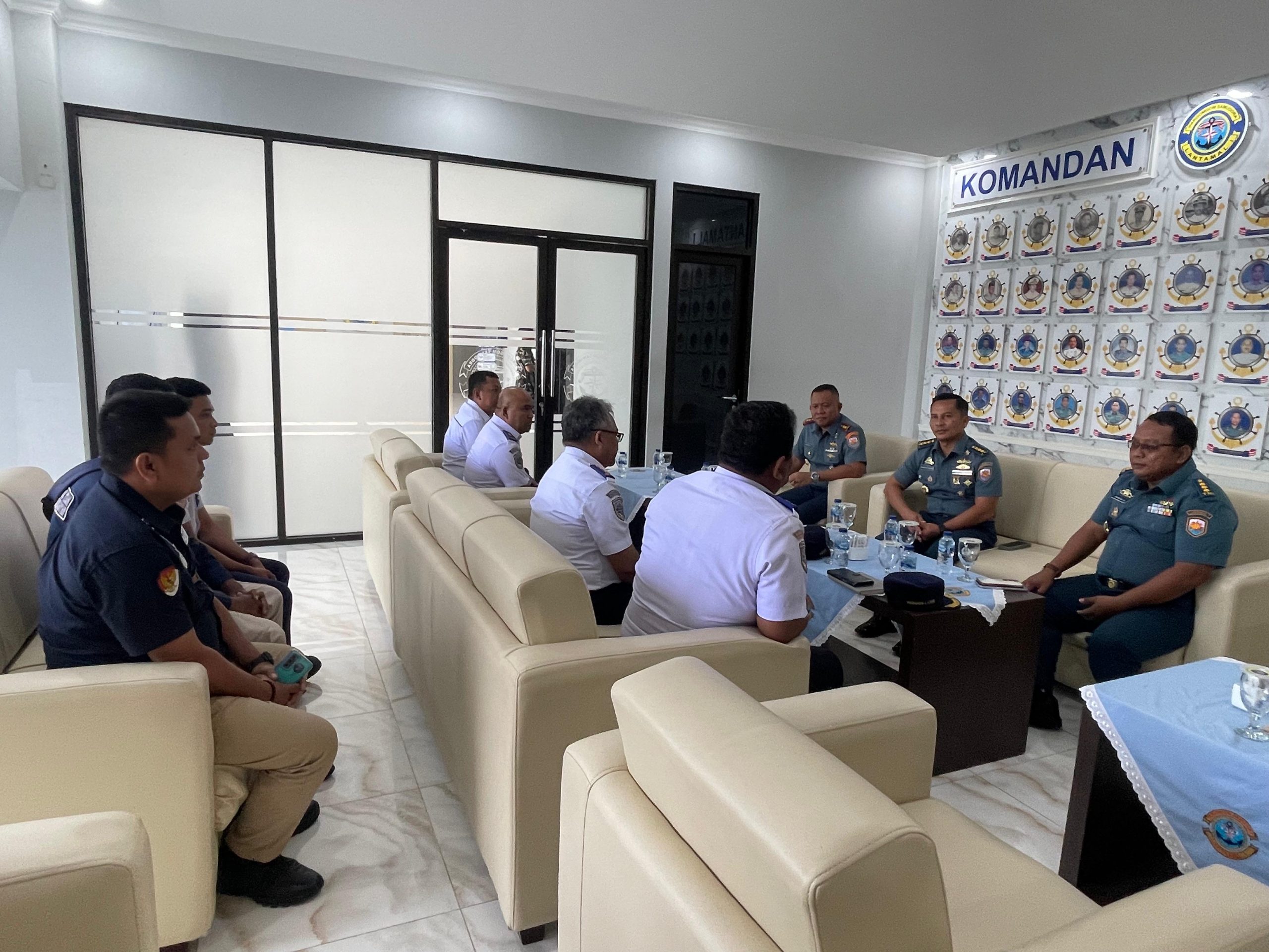 TNI AL, Belawan,- Komandan Pangkalan Utama TNI Angkatan Laut I (Danlantamal I) Brigjen TNI (Mar) Jasiman Purba, S.E., CHRMP., diwakili Asintel Danlantamal I Kolonel Laut (P) Bambang Widodo, S.E., M.Si., menerima kunjungan Plt. Kepala Kantor Kesyahbandaran dan Otoritas Pelabuhan Utama Belawan Marganda Lamhot Asi Sihite, S.E., M.MTr., beserta rombongan, bertempat di Ruang VIP Mako Lantamal I, Jalan Serma Hanafiah No. 01 Belawan, Sumatera Utara, Selasa (15/4/2025).